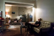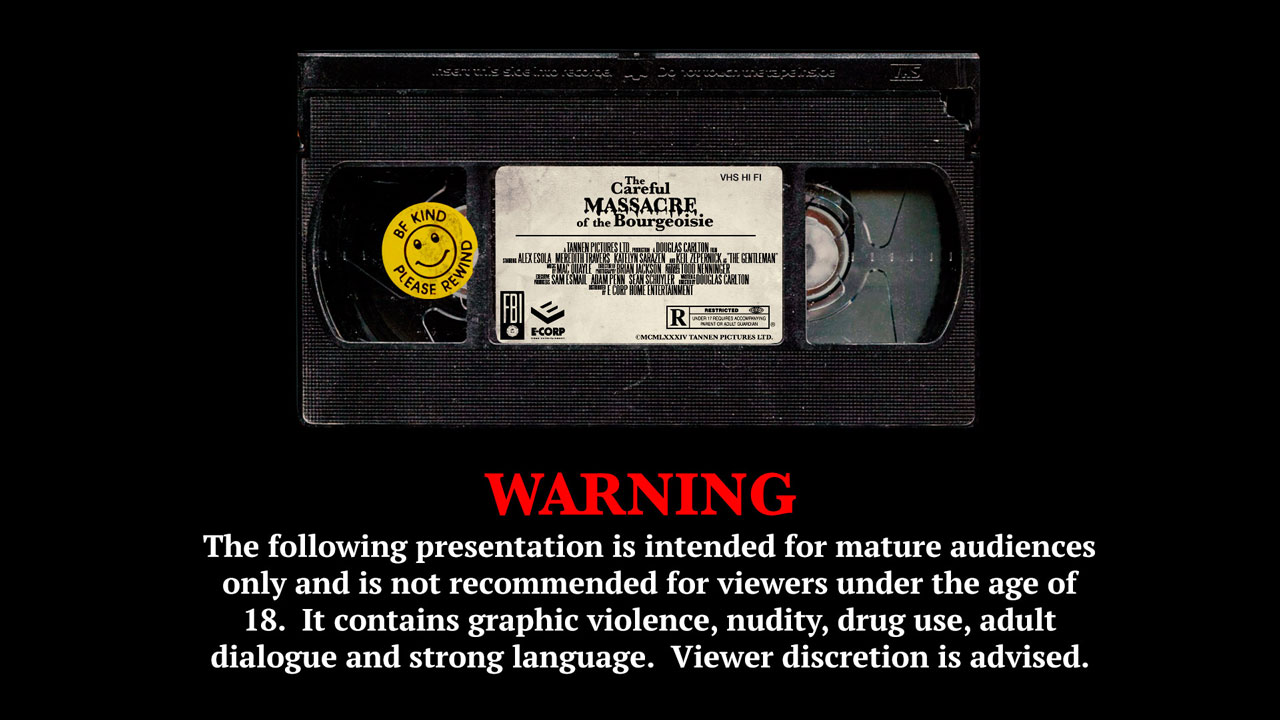 The movie that Darlene and Elliot watch, The Careful Massacre of the Bourgeoisie, is not a real film. It borrows its title and plot from Luis Buñuel's 1972 surrealist film The Discreet Charm of the Bourgeoisie, reinterpreted as a 1980's low-budget slasher film. USA Network has released an eight-minute version of the film online (Available here outside the U.S.). The film was distributed by E-Corp Home Entertainment, and is a VHS rip (Careful.Massacre.of.the.Bourgeoisie.1984-VHSrip.mp4) that Elliot has torrented.