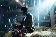 When Dominique is told to return to the barn after watching Santiago die, she breaks down crying by the house.