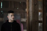 In Santiago's apartment, Irving has Elliot sit down. Irving tells the story of a beloved boxer who comes out of retirement to face the new, unstoppable champion. He trains old school and defies the odds and an early thrashing. There's no easy way out, but he puts his entire life on the line and goes the distance. He notes that Elliot has that going for him, while the Dark Army treats it more as a transaction. Mr. Robot notes that he just described the plot to Rocky IV.
